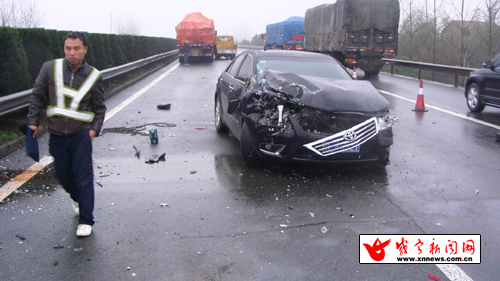 據(jù)豐田轎車駕駛員謝某稱,當(dāng)時(shí),他駕駛鄂L600XX車準(zhǔn)備前往武漢辦事,由于雨天道路濕滑,能見(jiàn)度不高,加之自己車速較快,超車時(shí)不慎撞上中央隔離帶后方向失控,撞上一輛黃色的清障車尾部,清障車被推撞時(shí)將站在車前的施救工撞倒。