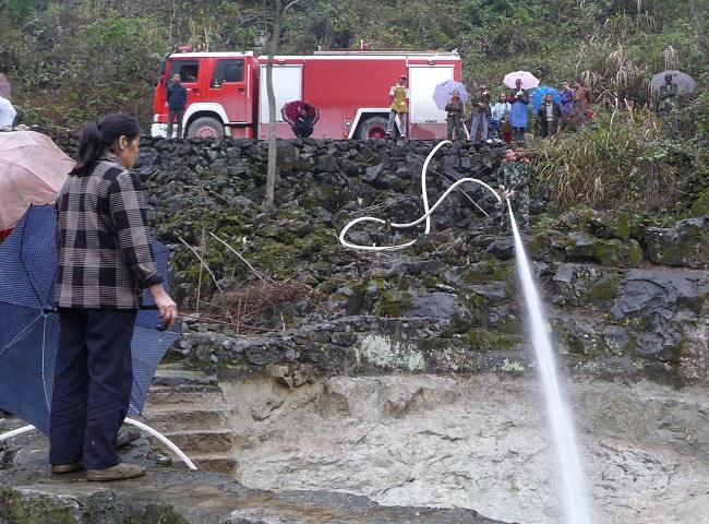 金城江區(qū)保平鄉(xiāng)元洞村號(hào)洞屯100多位村民長(zhǎng)期依靠一個(gè)330立方米的集雨水柜蓄水供給。由于持續(xù)干旱,去年12月,該水柜集水已干枯見(jiàn)底,群眾飲水十分困難。保平鄉(xiāng)黨委、政府立即啟動(dòng)抗旱應(yīng)急預(yù)案,一方面組織群眾采取自救措施,一方面積極與消防部門(mén)聯(lián)系利用消防車(chē)送水救援。 近日,金城江消防大隊(duì)派出消防車(chē),在山區(qū)道路上爬行2個(gè)多小時(shí)后,把8噸水注入水柜,解決了該屯群眾用水燃眉之急。 |