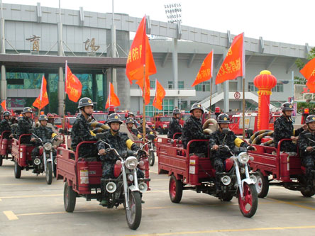 由于資金有限,這些隊(duì)伍除了配備正式的消防車外,還配備拖拉機(jī)簡(jiǎn)易消防車45部,三輪消防摩托車40部等。消防人員介紹,這種消防隊(duì)更多的是集中在一些鄉(xiāng)鎮(zhèn)和農(nóng)村,這些裝備更適合農(nóng)村的地理環(huán)境,在滅火搶險(xiǎn)救援中發(fā)揮著靈巧、迅速的作用。