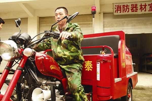 這款小型消防車就是一臺三輪摩托車,跟普通消防車一樣全身紅亮,外表看似不起眼的它,作用可真不小,不少村莊道路狹窄,一旦發(fā)生火災(zāi),個頭碩大的消防車根本進不去,這時“小個子”就能大顯身手,不但跑得快,而且很好操作使用,進小巷滅火可是它的強項。消防隊員說,車上配有兩套滅火裝置,連接消防栓射出的水柱能達45米遠,可供水到5層樓之高。